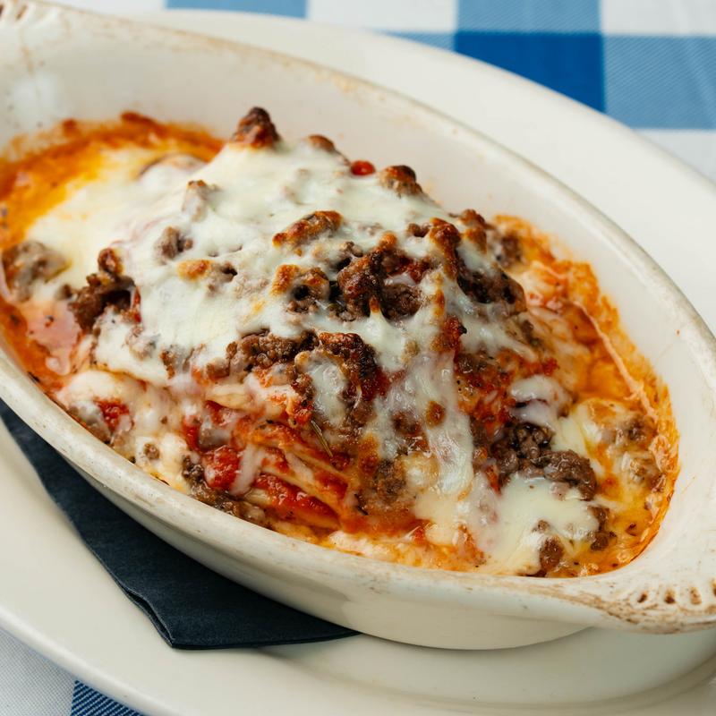 5 layer beef lassanga made with ricotta cheese, marinara, and mozzarella cheese.