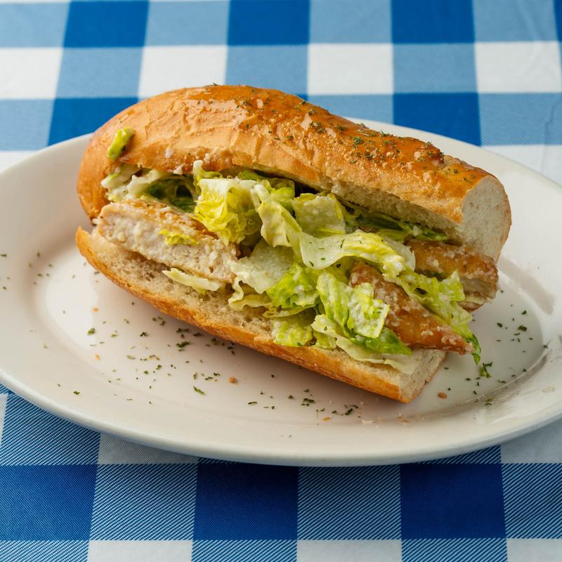 Romaine lettuce, grilled chicken, croutons, Caesar dressing.