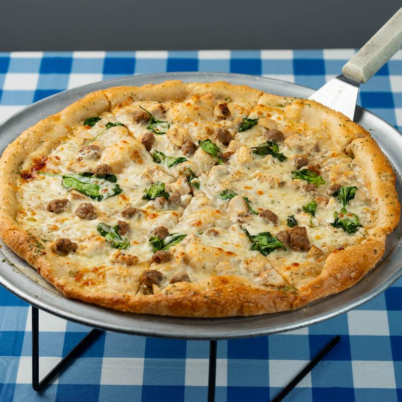 12" $15.95 | 16" $22.95 • Chicken, sausage, spinach, Alfredo sauce